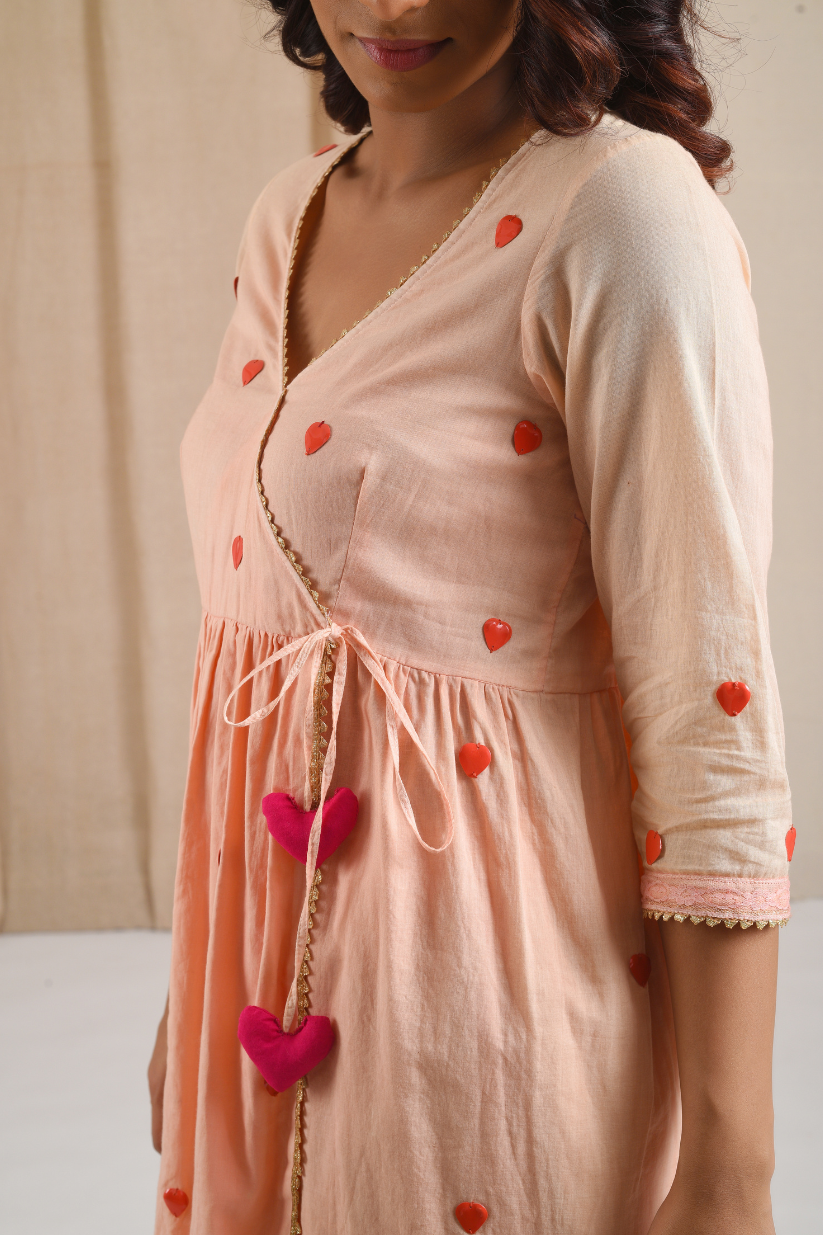 Angrakha kurta with heart embroidery details all over comes with matching pants.