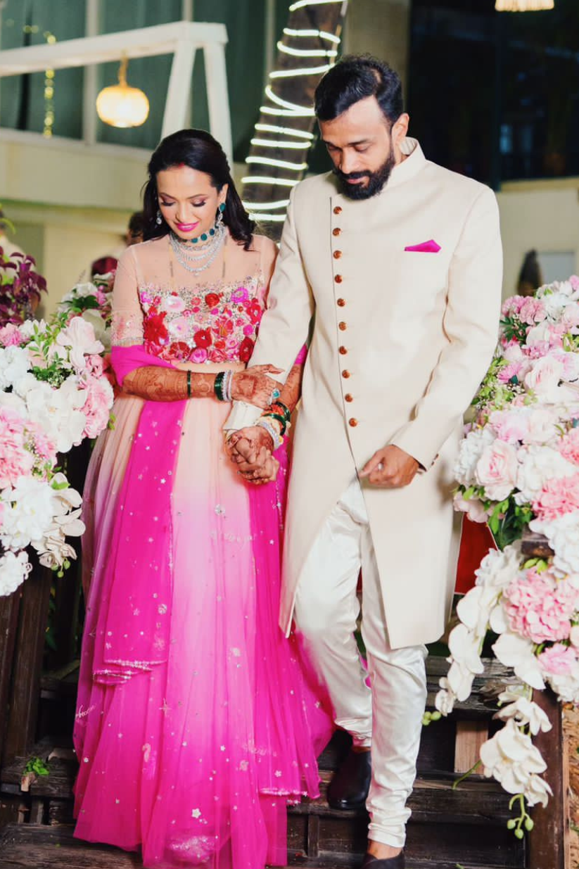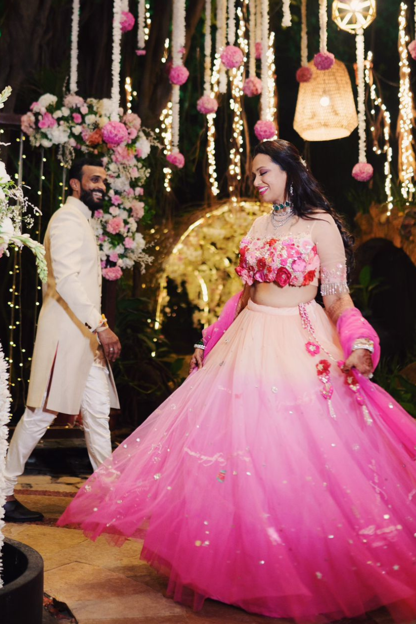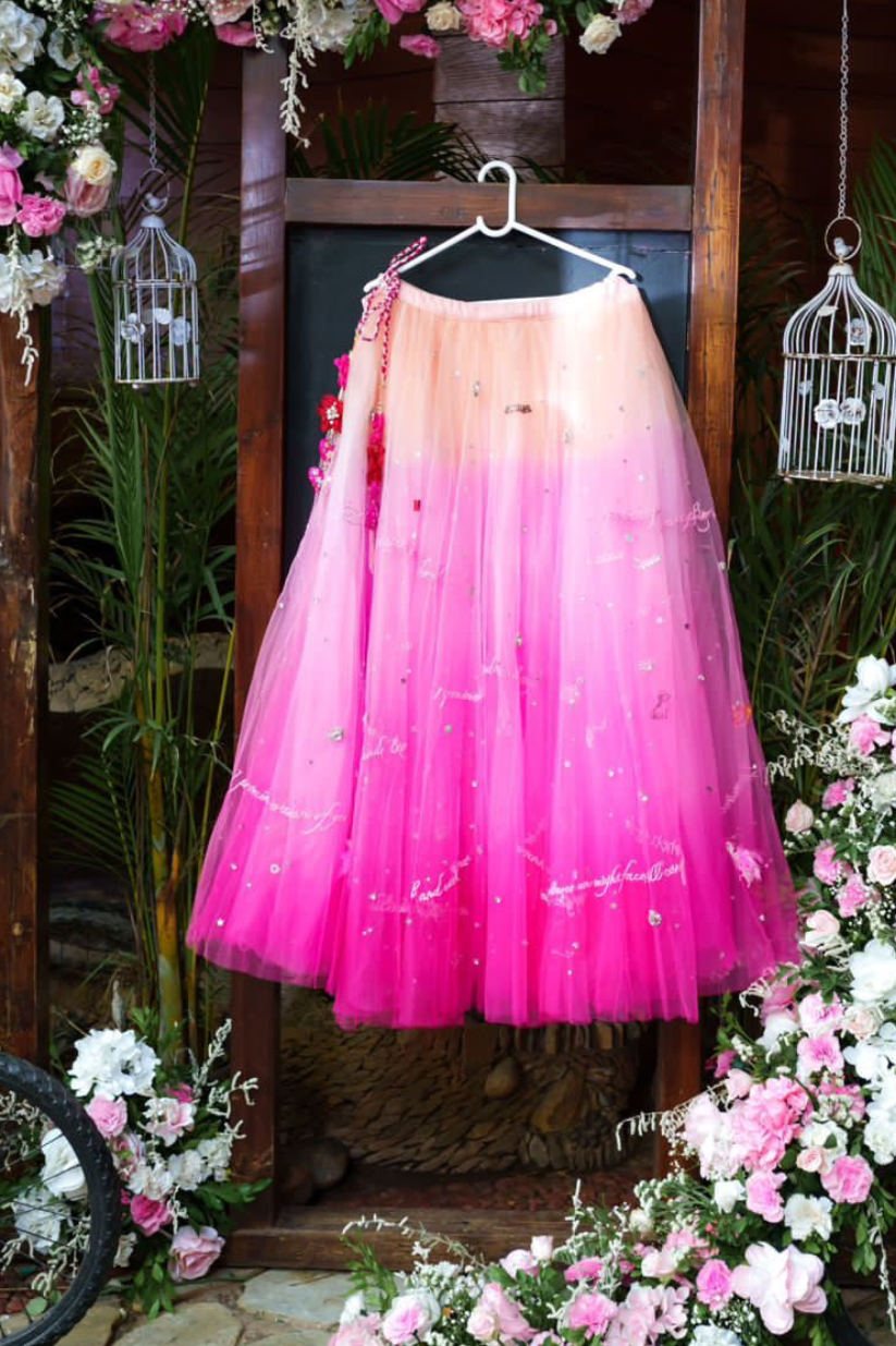On the lehanga All your vow’s are hand embroidered with your favourite quotes and memories