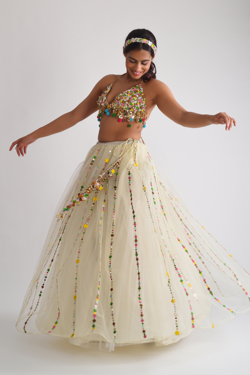 It has matching dupatta too. The outfit is super fun and so comfortable that you just focus on enjoying festivities and wedding fun (Just let us know if you need any sort of customisation with the blouse shape)